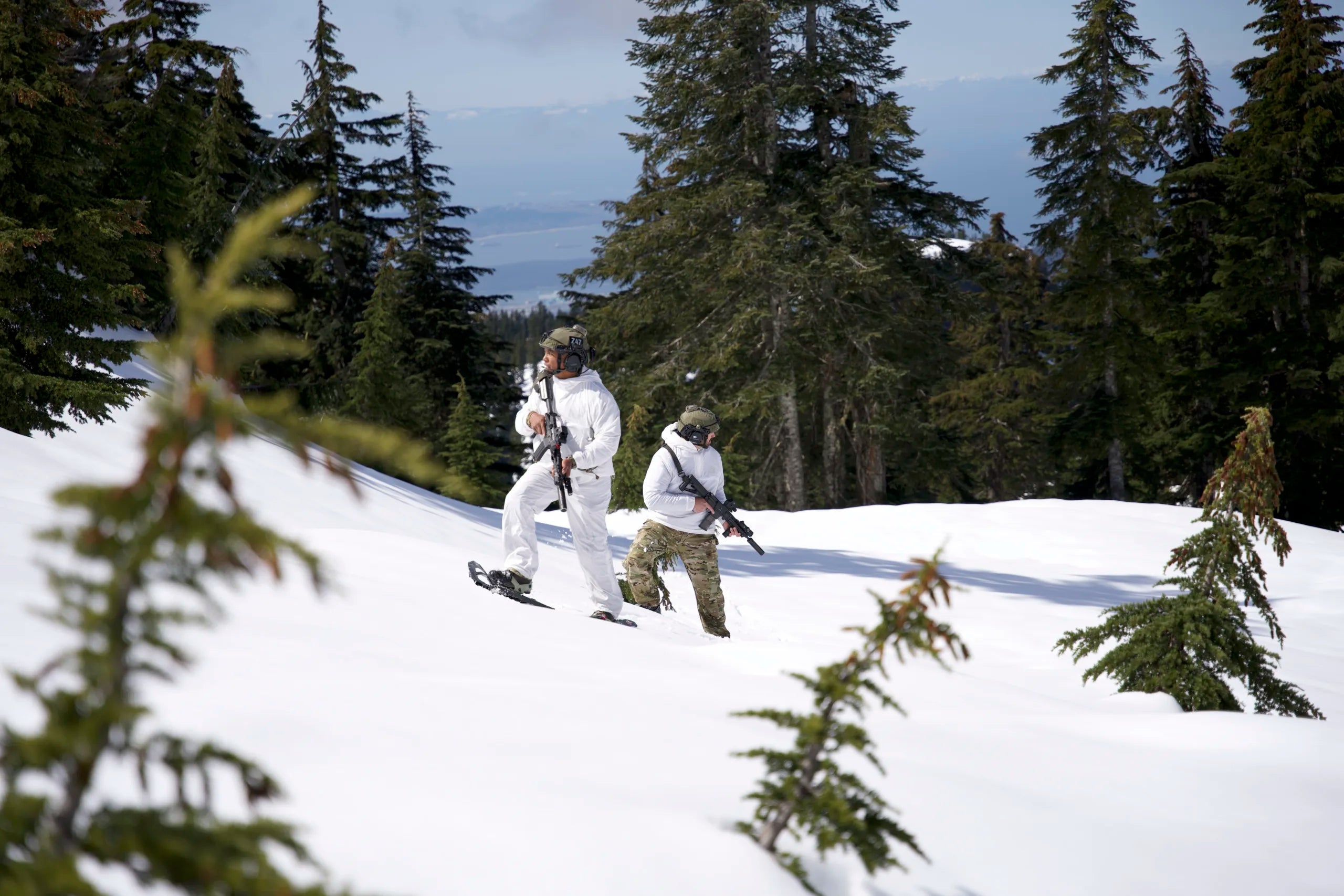 Quiet, featherweight, weather shedding and packable concealment for arctic or urban conditions. White colorway functions as overwhites.
